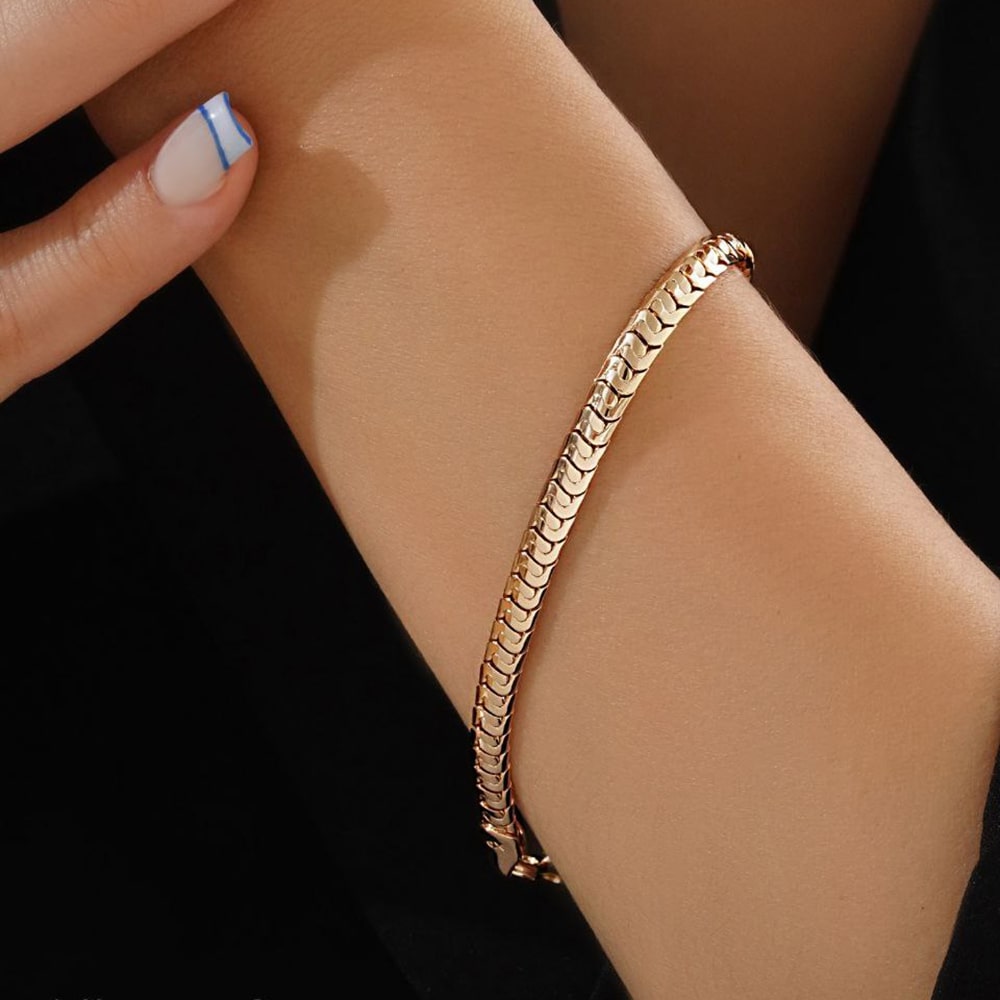 اگر به دنبال افزودن عنصری از هنر و پیچیدگی به جعبه زیورآلات بدل خود هستید، دستبند ماری ژوپینگ طلایی رنگ ثابت، انتخابی بی نظیر خواهد بود. این دستبند با الهام از الگوی مار، طراحی شده تا ترکیبی از رازآلودی و جذابیت را با خود به همراه داشته باشد. جنس این دستبند از مس با روکش طلا است که درخشش و زیبایی طلا را با قیمتی به صرفه تر به شما ارائه می دهد. ویژگی رنگ ثابت آن تضمین می کند که درخشش خیره کننده خود را حتی با استفاده مداوم، کاملاً حفظ کند. همچنین، خاصیت ضد حساسیت این محصول باعث می شود که مناسب برای تمام انواع پوست، حتی حساس ترین آن ها باشد. این دستبند به طور خاص برای مچ های 18 سانتی متری طراحی شده است و با پهنای 5 میلی متری، ظرافتی شیک و سبکی بهروز به نمایش می گذارد. وزن مناسب حدود 10 گرم باعث می شود که دستبند ماری ژوپینگ طلایی رنگ ثابت به راحتی برای استفاده روزمره مناسب باشد؛ بدون ایجاد حس سنگینی یا آزار. این دستبند با جذابیت و طرحی خاص، هدیه ای منحصر به فرد است. انتخابی هوشمندانه برای نشان دادن استایل و شیک پوشی شما یا بهترین ها در روزهای خاص؛ چرا که هر جزئی از این دستبند، جلوه ای از زیبایی و کیفیت را تصدیق می کند.
