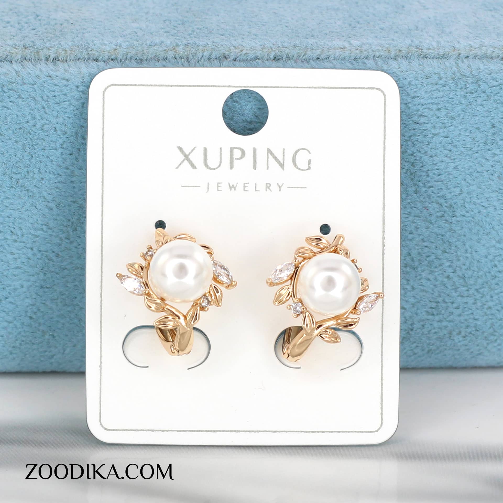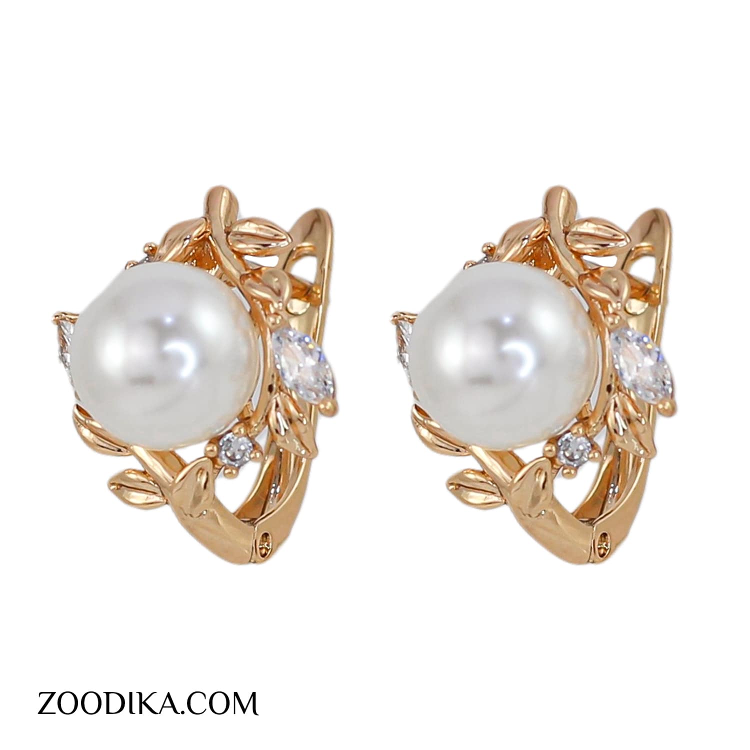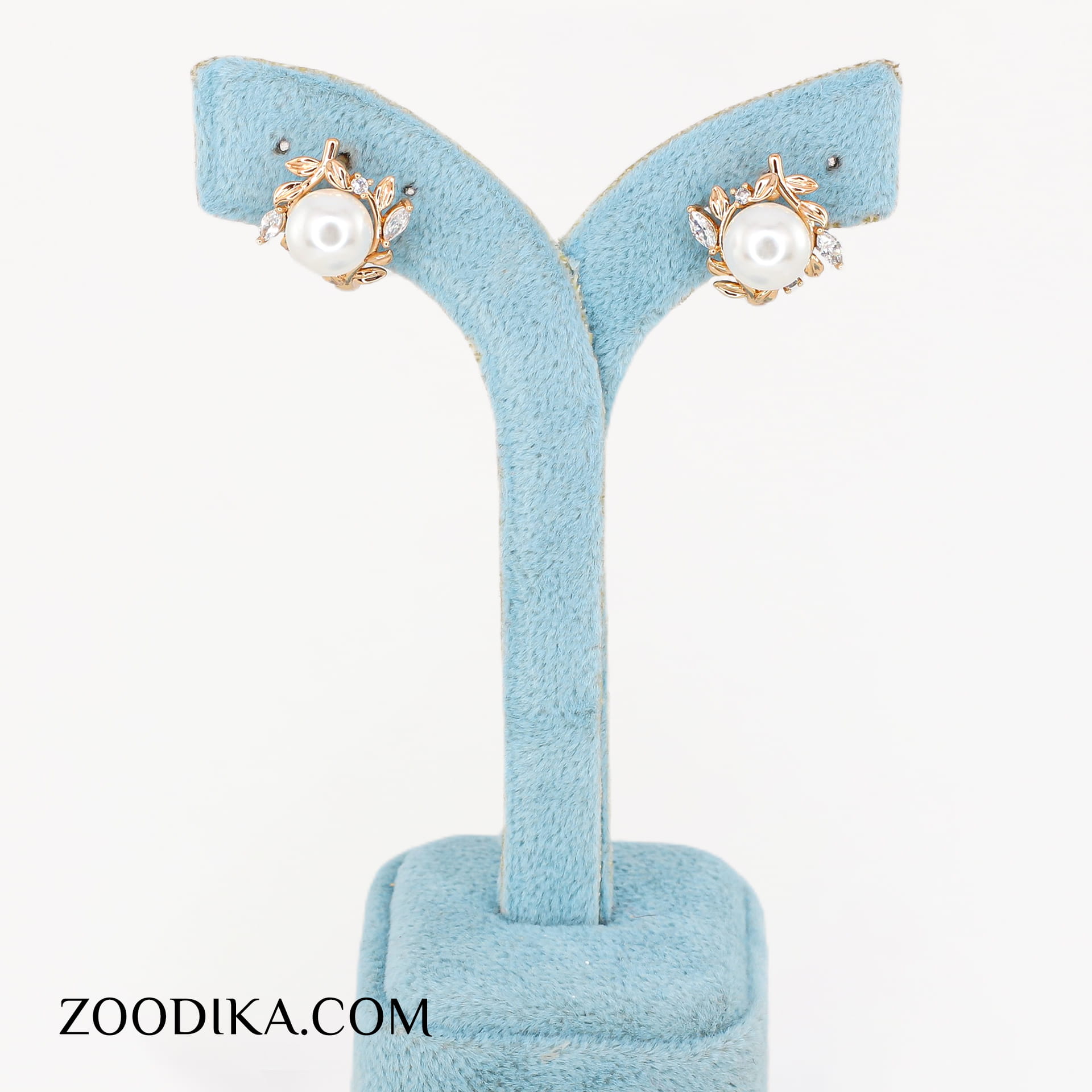 گوشواره میخی ژوپینگ مرواریدی مدل برگ خزان AAC-1175
