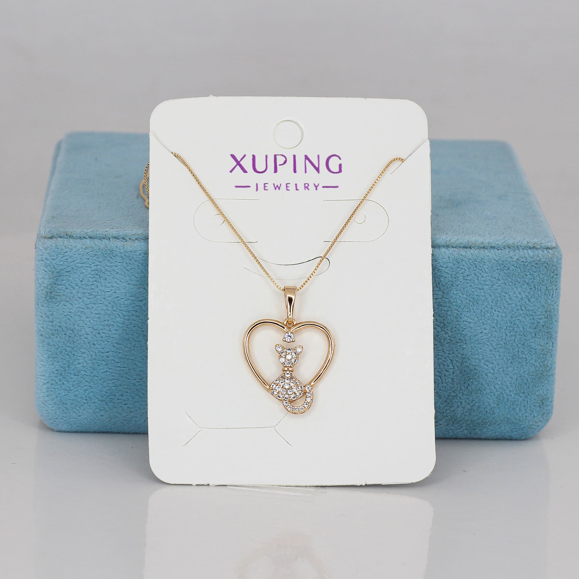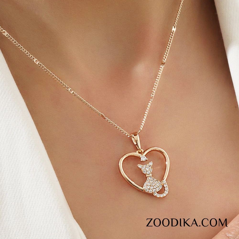 زیورآلات مشابه پلاک و زنجیر ژوپینگ قلبی و گربه طلایی نگین دار