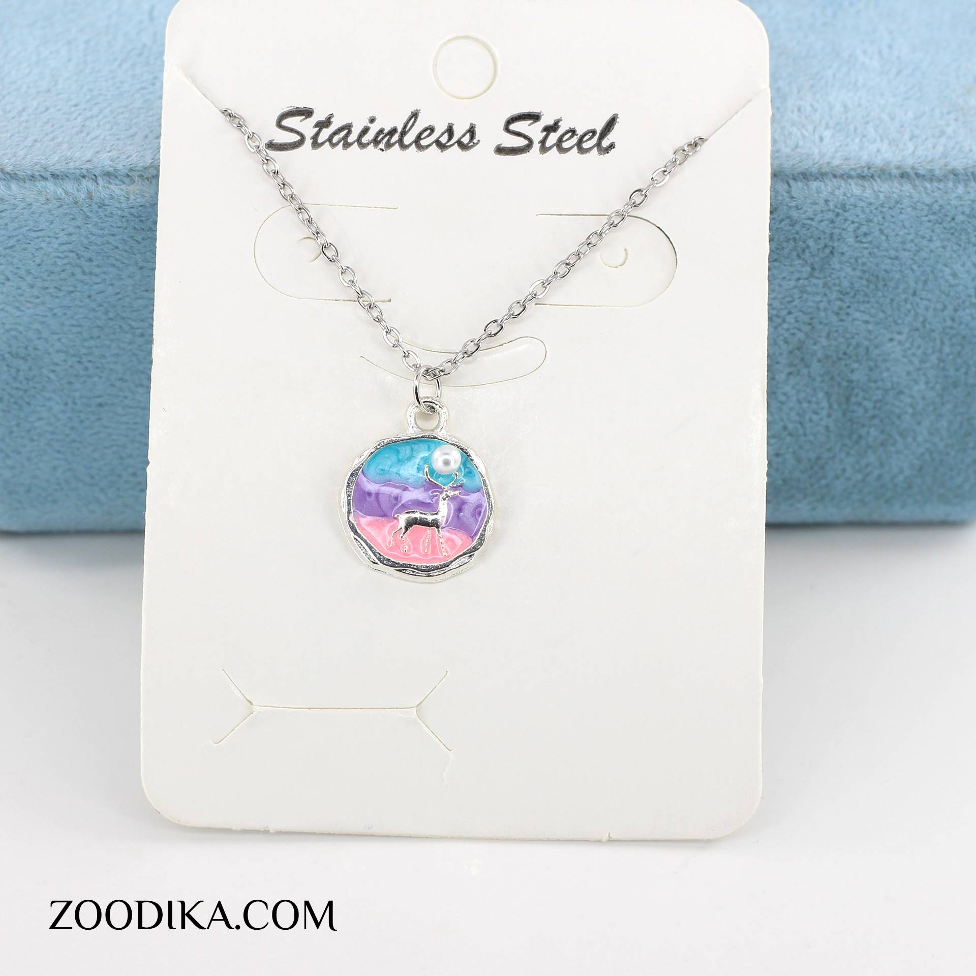 گردنبند استیل دخترانه مدل گوزن و مروارید AAB-951